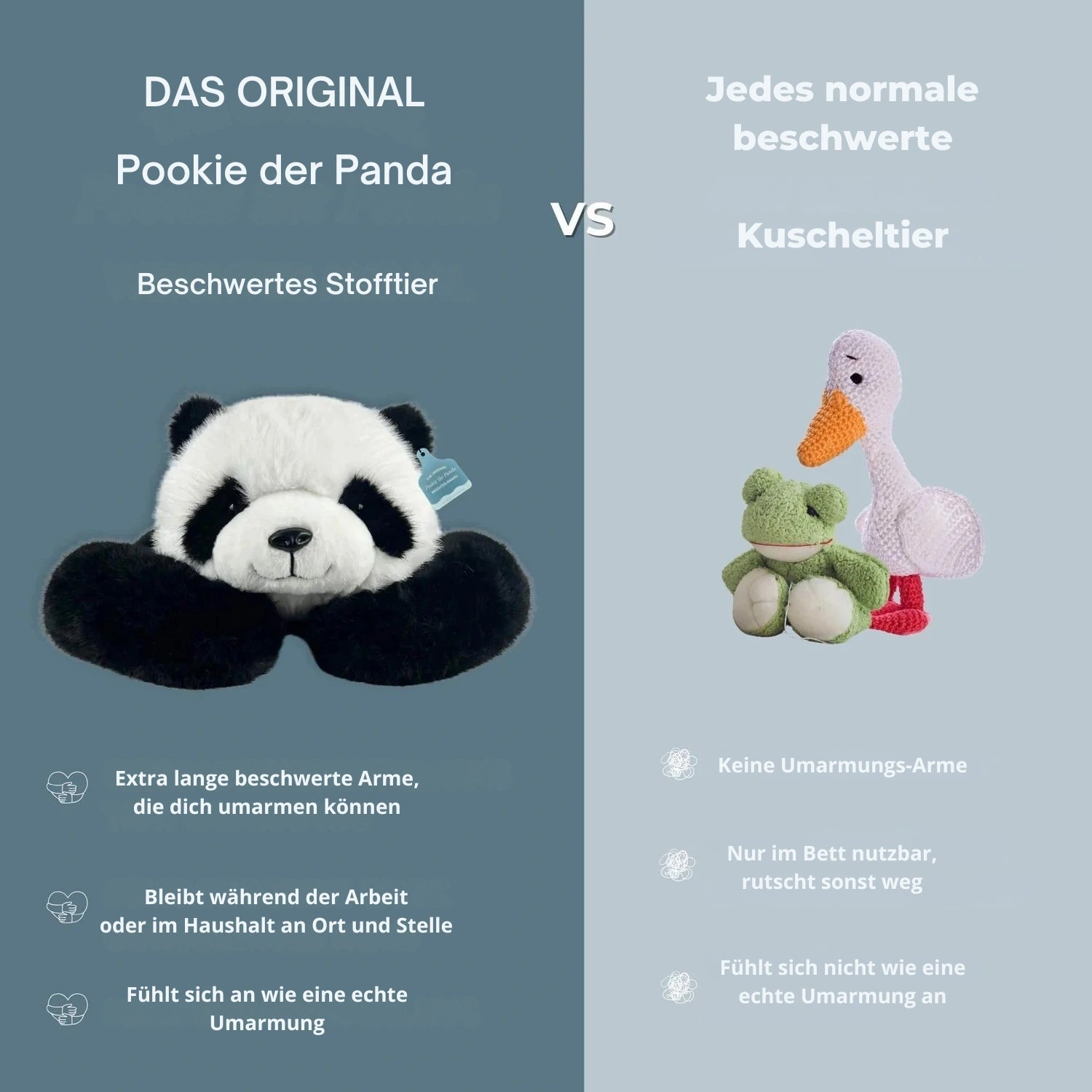 Andere beschwerte Kuscheltiere waren zu klein, zu leicht oder rutschten ständig weg.